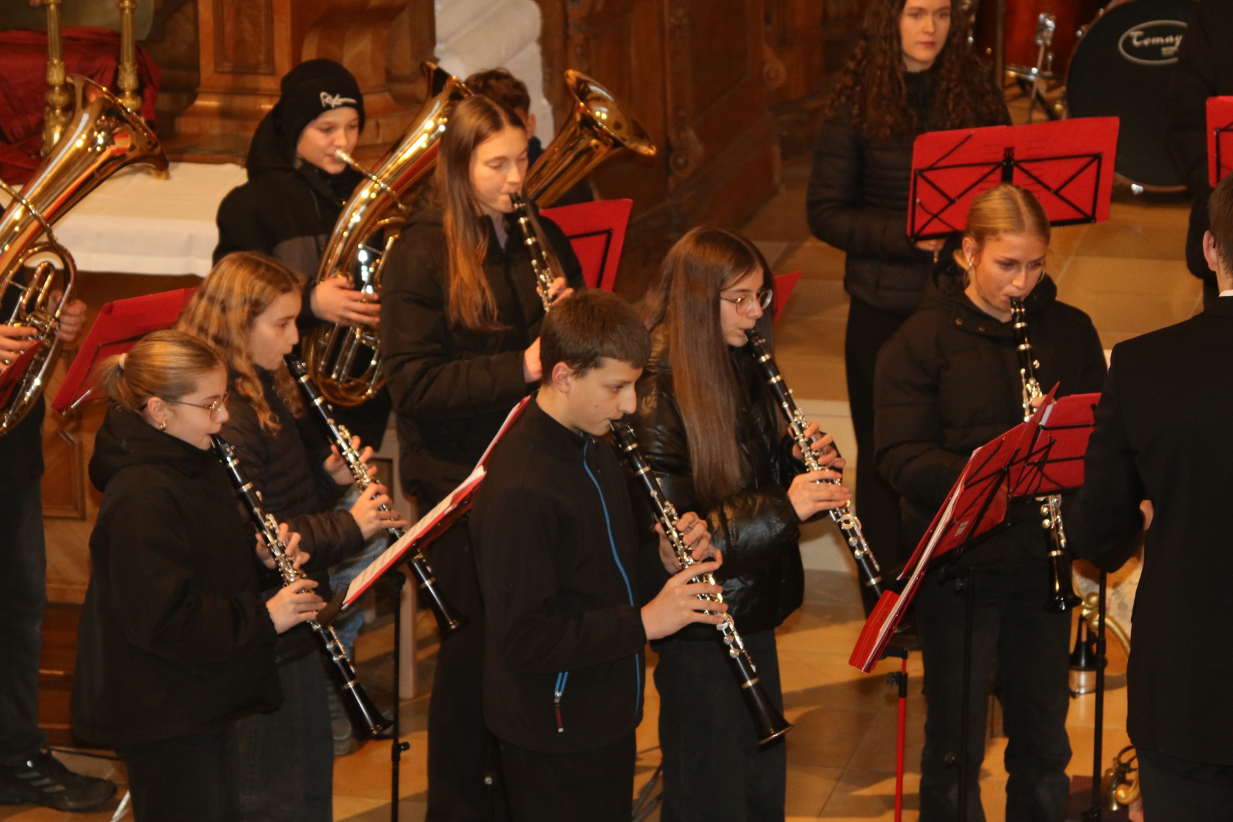 Das Programm war geprägt von einer abwechslungsreichen Mischung aus traditionellen Weisen und feierlichen instrumentalen Stücken. Das Jugendorchester sowie das Blechbläserensemble sorgten mit ihren kraftvollen Klängen für einen festlichen Rahmen, während das Klarinettenquartett mit feinen, harmonischen Melodien besondere Akzente setzte. Ein Gesangsensemble bereicherte den Abend zudem mit feinfühligen vokalen Interpretationen und verlieh dem Konzert eine sehr persönliche Note.