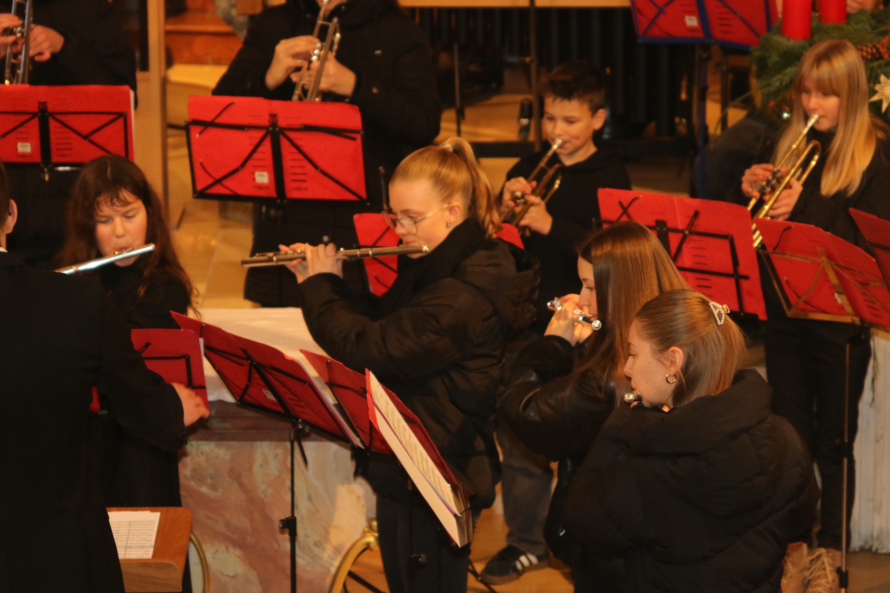 Das Programm war geprägt von einer abwechslungsreichen Mischung aus traditionellen Weisen und feierlichen instrumentalen Stücken. Das Jugendorchester sowie das Blechbläserensemble sorgten mit ihren kraftvollen Klängen für einen festlichen Rahmen, während das Klarinettenquartett mit feinen, harmonischen Melodien besondere Akzente setzte. Ein Gesangsensemble bereicherte den Abend zudem mit feinfühligen vokalen Interpretationen und verlieh dem Konzert eine sehr persönliche Note.