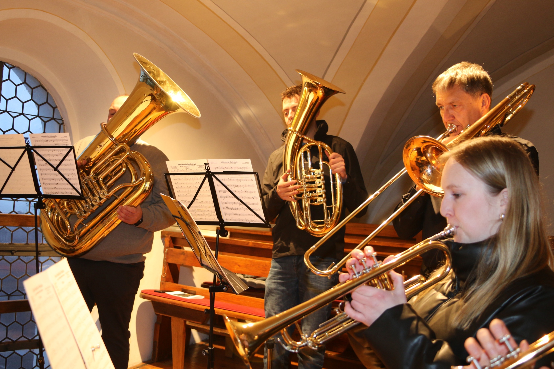 Das Programm war geprägt von einer abwechslungsreichen Mischung aus traditionellen Weisen und feierlichen instrumentalen Stücken. Das Jugendorchester sowie das Blechbläserensemble sorgten mit ihren kraftvollen Klängen für einen festlichen Rahmen, während das Klarinettenquartett mit feinen, harmonischen Melodien besondere Akzente setzte. Ein Gesangsensemble bereicherte den Abend zudem mit feinfühligen vokalen Interpretationen und verlieh dem Konzert eine sehr persönliche Note.